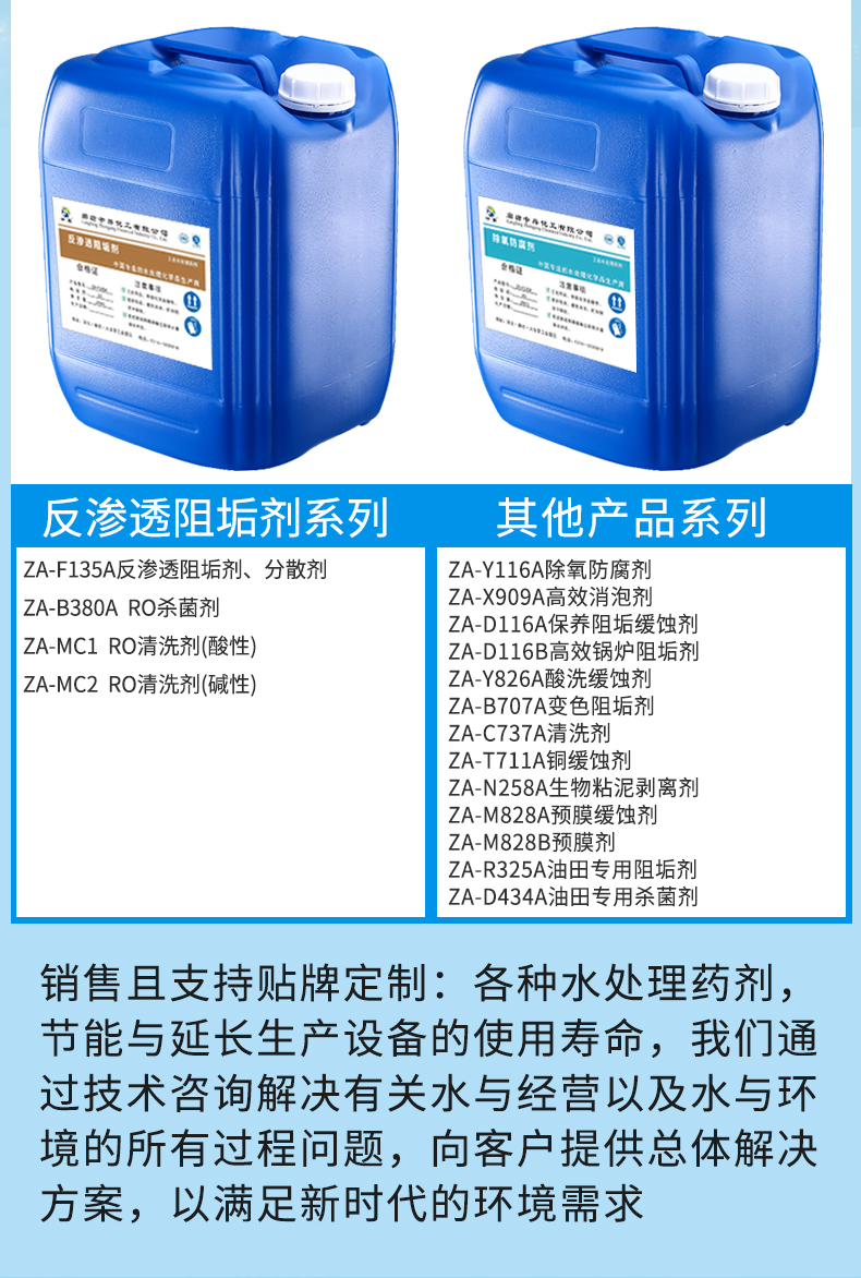 ZA-F135A是用于反滲透系統(tǒng)的專用阻垢劑,能有效的控制無機鹽垢在膜表面的沉積。
